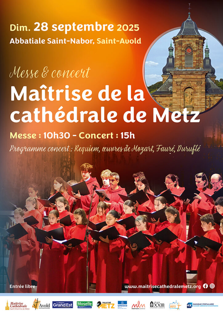 La Maîtrise de la cathédrale de Metz sera présente à la Messe de 10h30, puis proposera un concert à 15h, avec au programme des œuvres de Mozart, Fauré, Duruflé